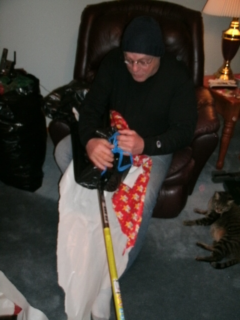This was Dad Christmas Eve at his house wearing the hat I made him. |